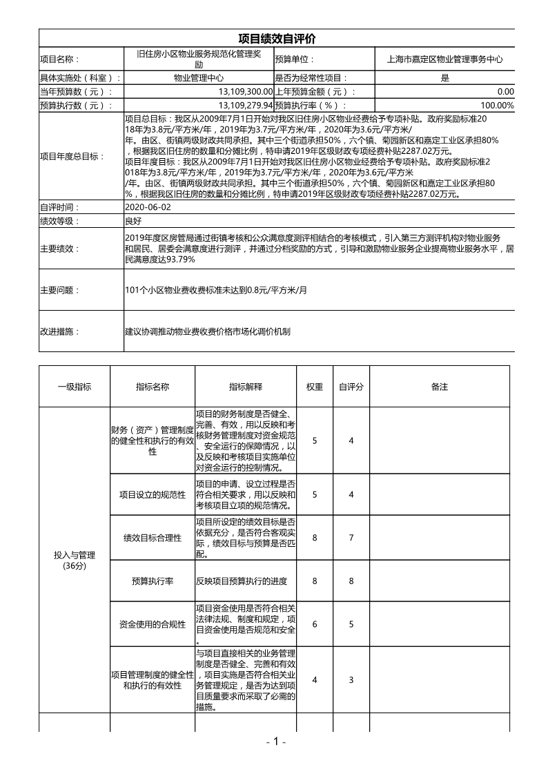 索引号: 00001434-9/2020-00094 发布机构: 区房管局 发文日期: 2020年09月14日 主题分类: 绩效评价 关键词: 上海市嘉定区物业管理事务中心2019年度项目绩效自评表 发布时间:2020-09-14 浏览次数: 次 【字体:小 大】 上海市嘉定区物业管理事务中心2019年度项目绩效自评表.pdf